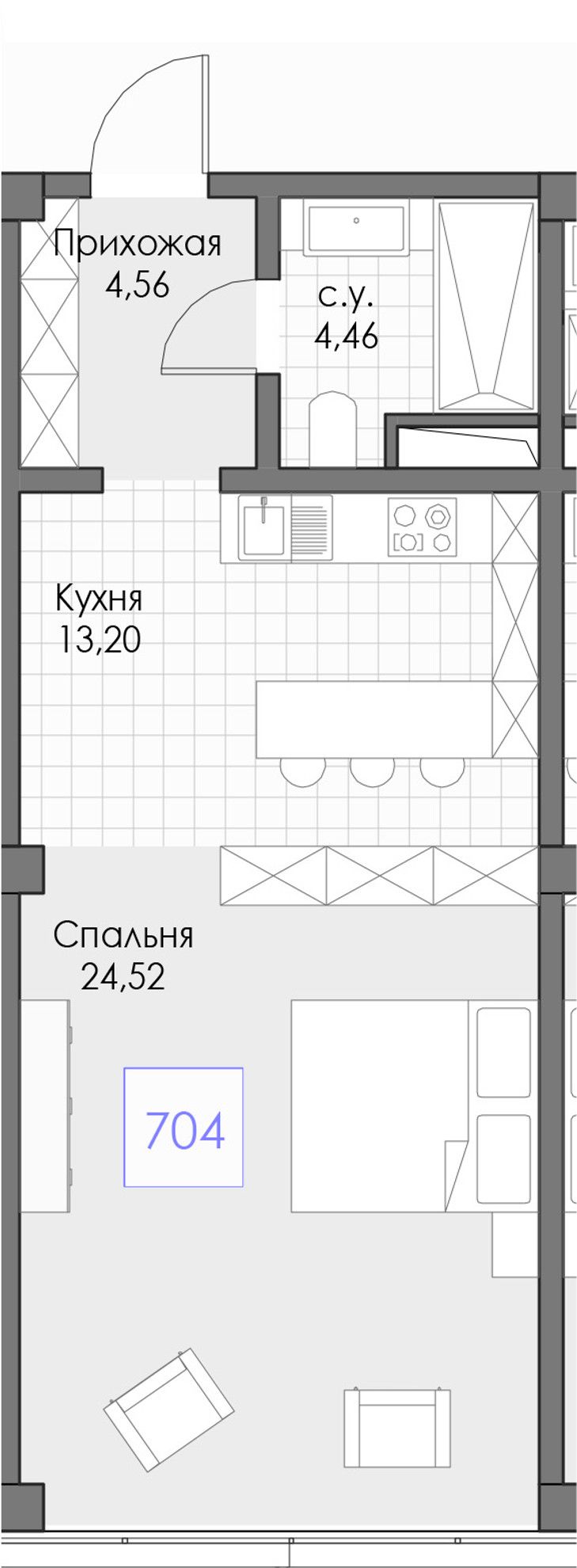 1-комнатная — 46,74 м² 7/13 эт. в BERIY PALACE (БЕРИЙ ПАЛАС)