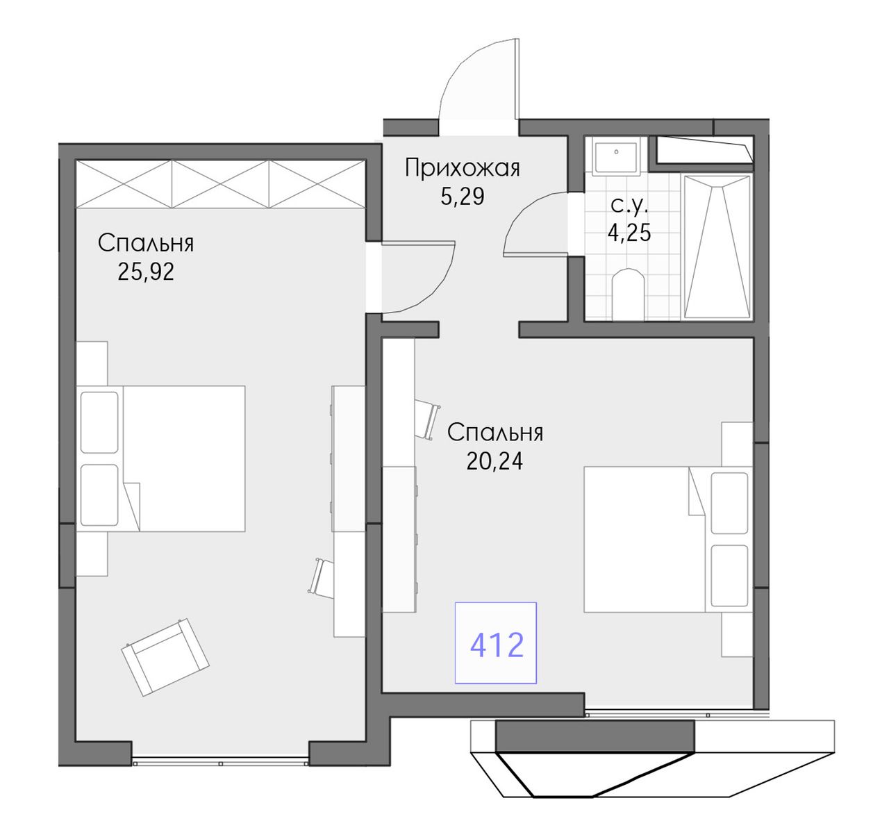 2-комнатная — 55,7 м² 4/13 эт. в BERIY PALACE (БЕРИЙ ПАЛАС)