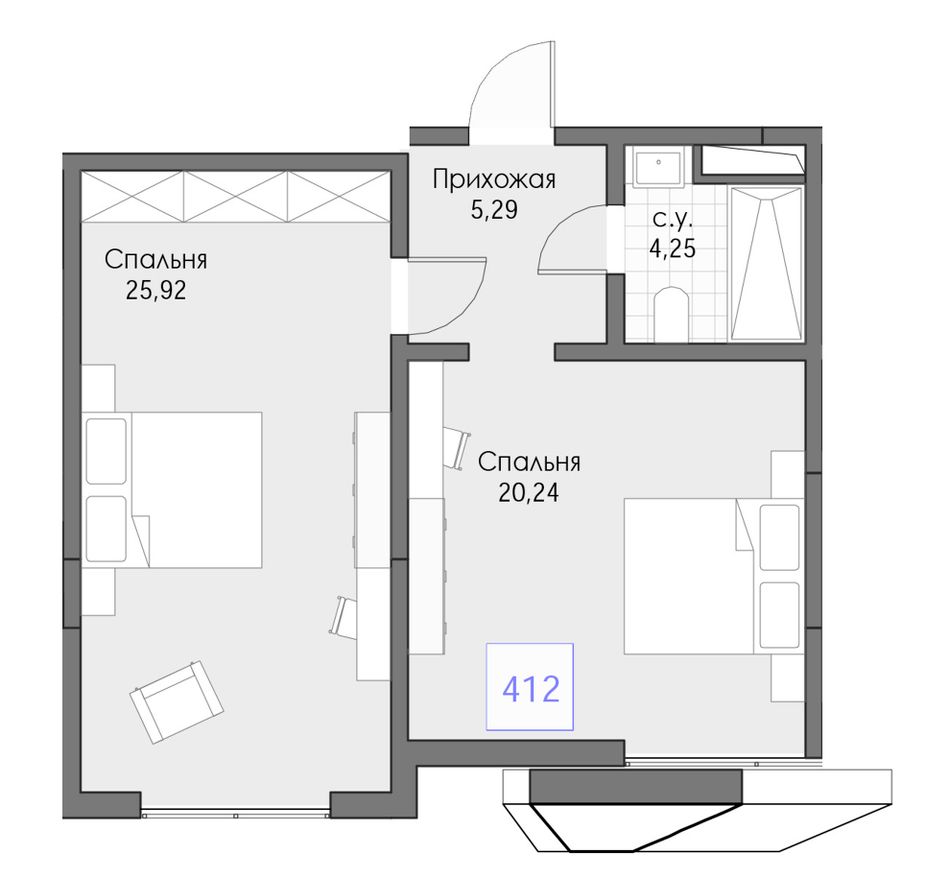3. 2-комнатная, 55,7 м²