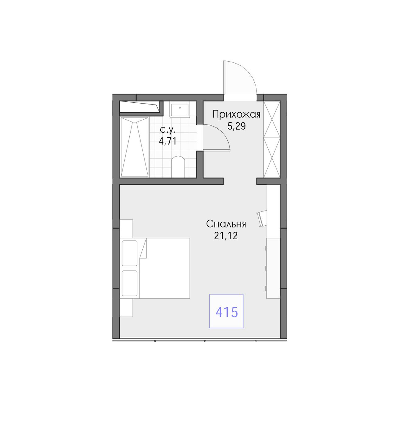 1-комнатная — 31,12 м² 4/13 эт. в Берий Палас