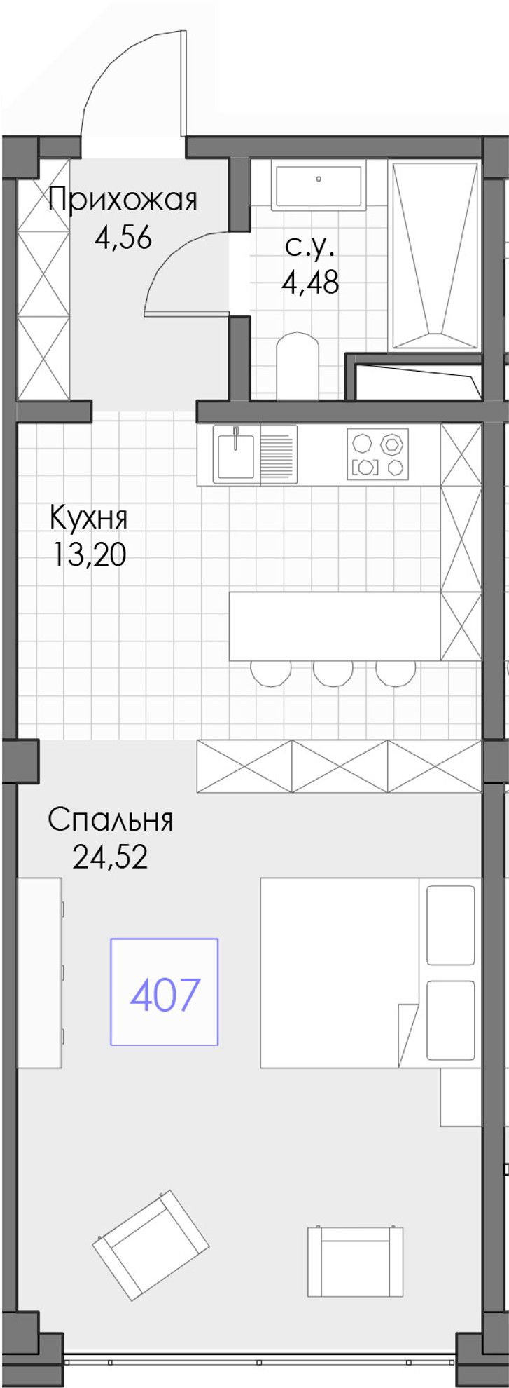1-комнатная — 46,76 м² 4/13 эт. в Берий Палас