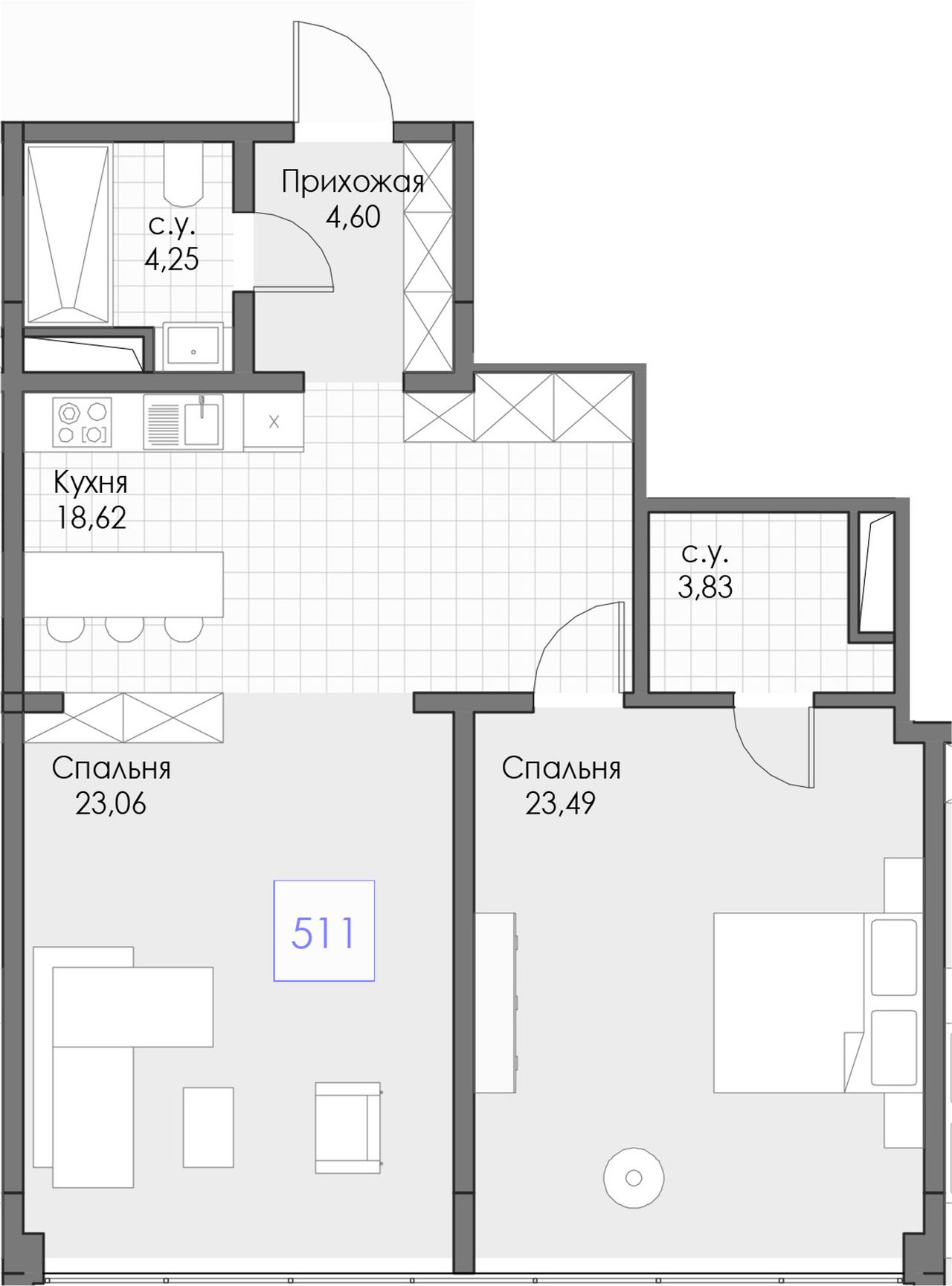 2-комнатная — 77,85 м² 5/13 эт. в BERIY PALACE (БЕРИЙ ПАЛАС)