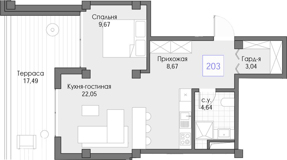 2-комнатная — 65,56 м² 2/13 эт. в BERIY PALACE (БЕРИЙ ПАЛАС)