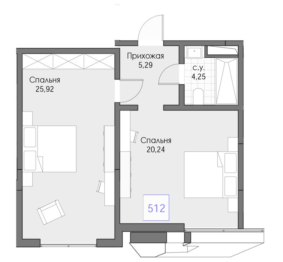 2-комнатная — 55,7 м² 5/13 эт. в BERIY PALACE (БЕРИЙ ПАЛАС)