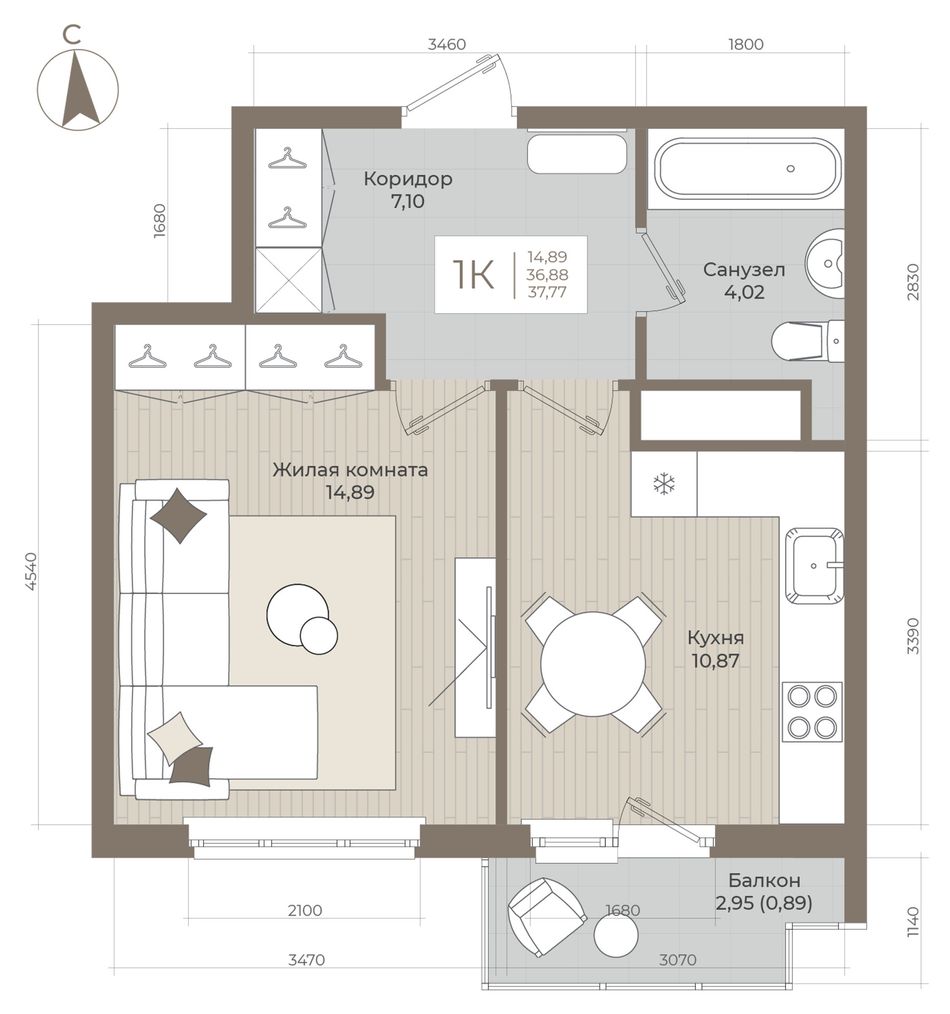 1-комнатная — 37,77 м² 5/9 эт. в ОНИКС
