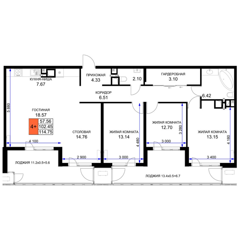 | 4+ комн. | 115 м² | 47,3 млн ₽ |