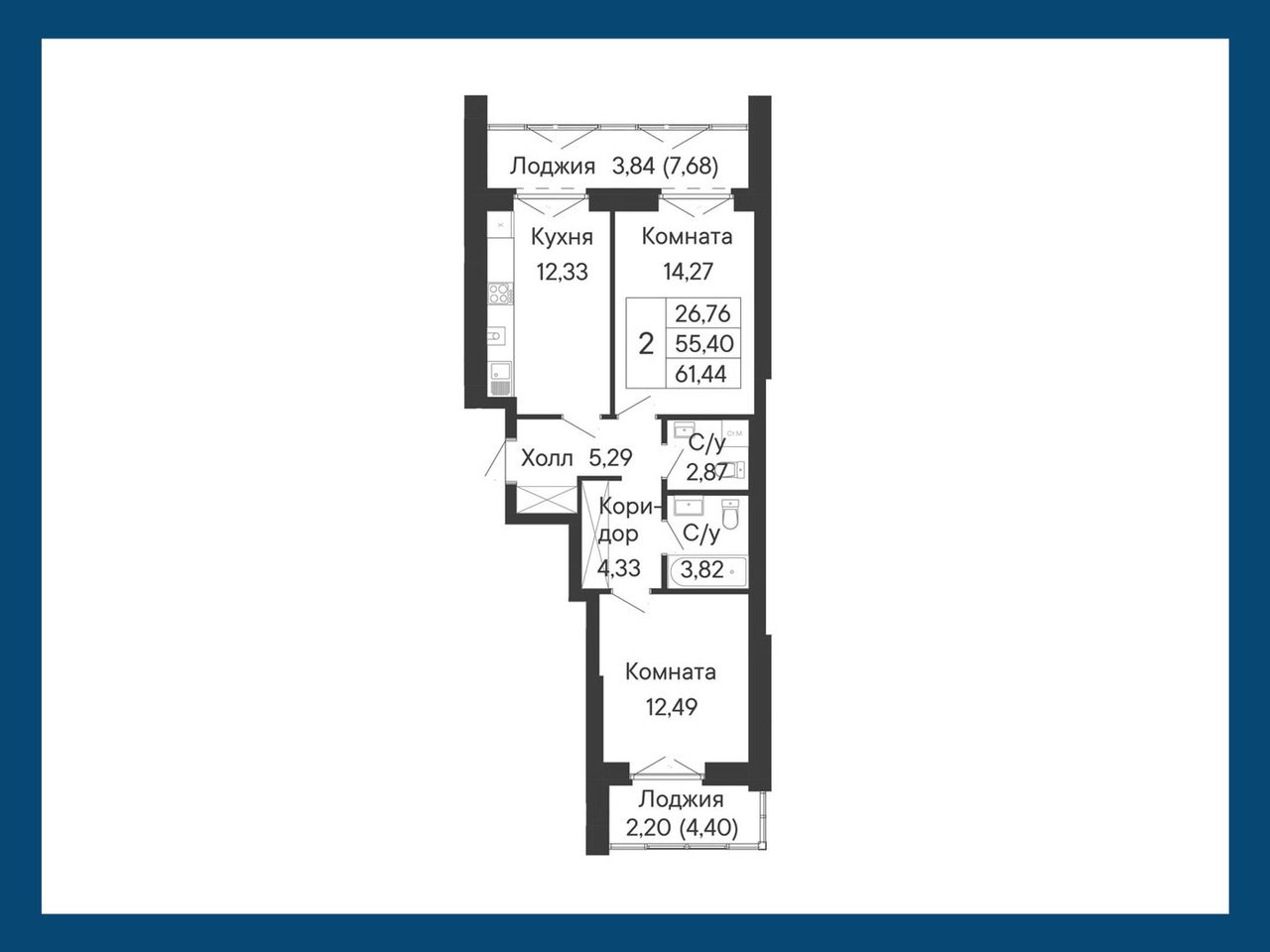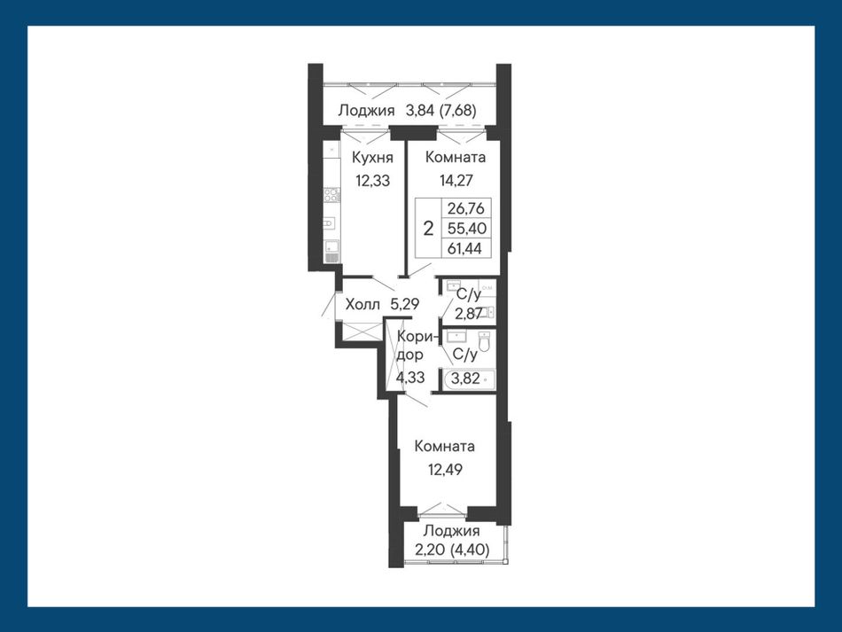 2-комнатная — 61,44 м² 5/8 эт. в Ривьера