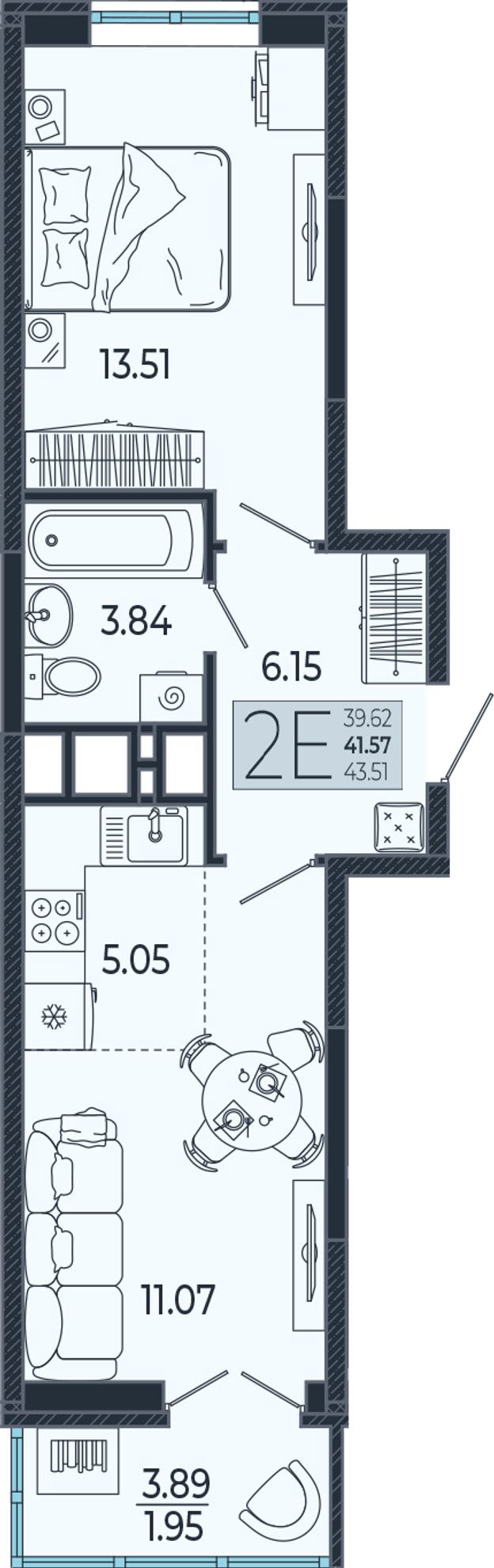 1-комнатная — 41,6 м² 3/21 эт. в Эстет