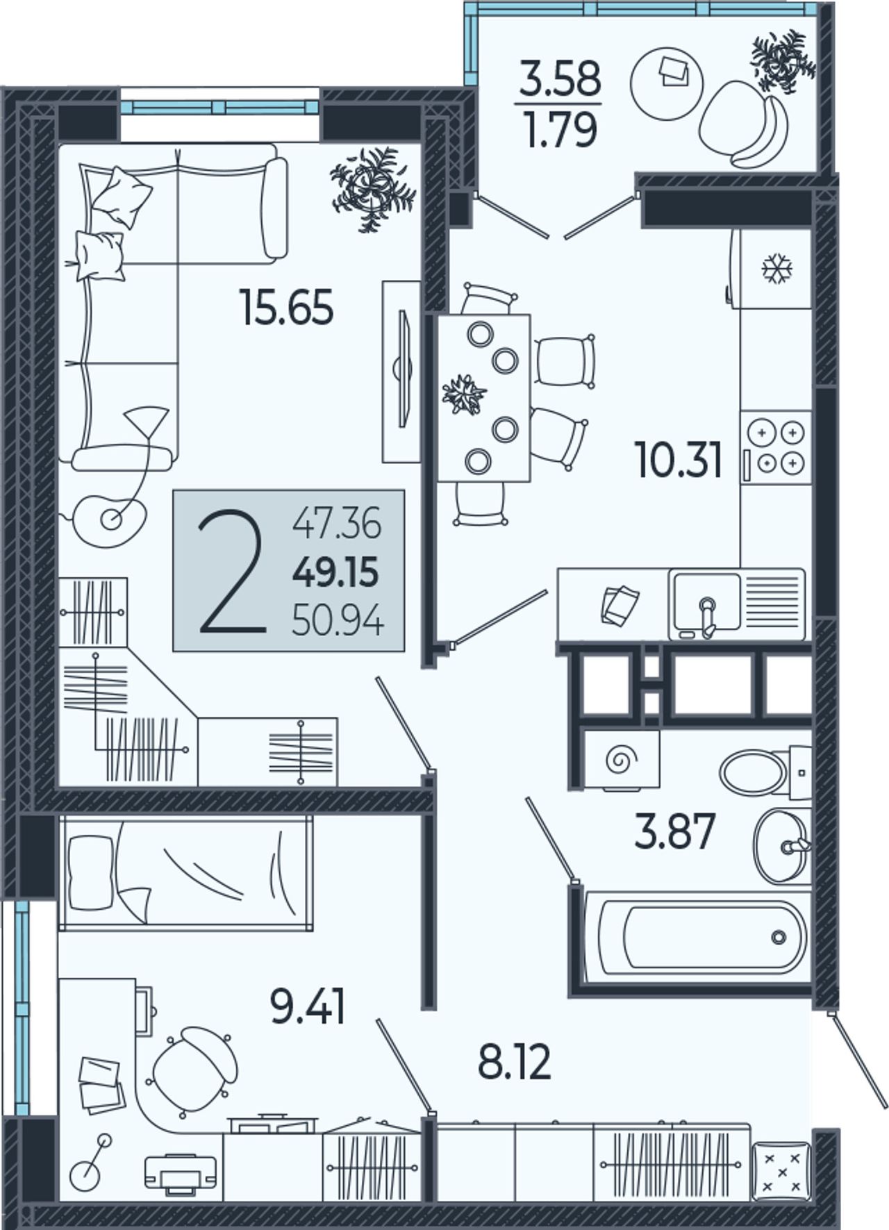 Общая площадь49,5 м²