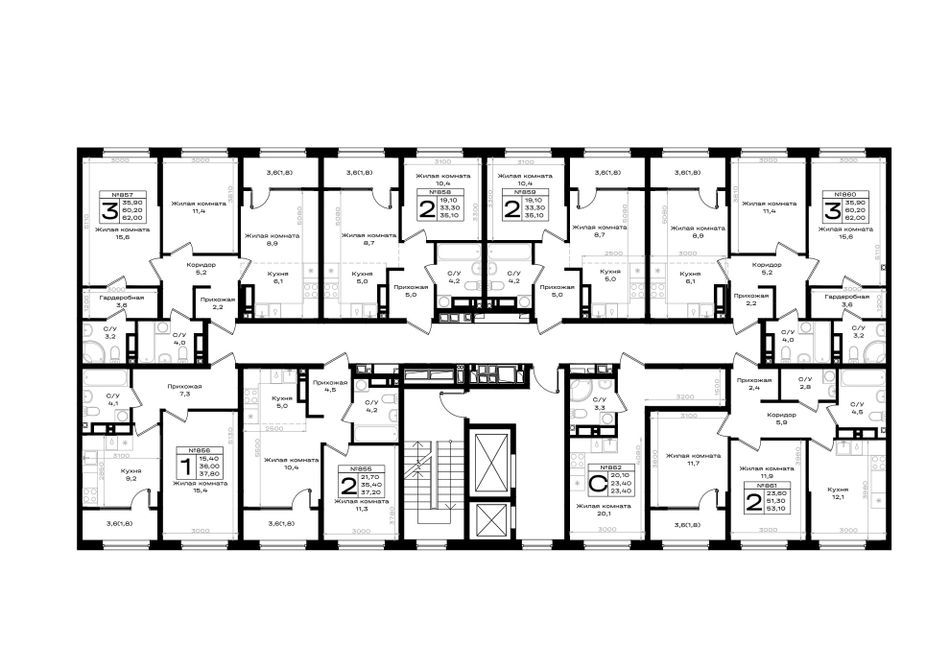 | 3-комн. | 62 - 86 м² | 11,6 - 23,2 млн ₽ |