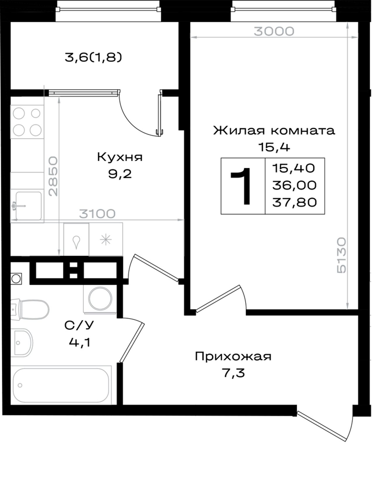 1-комнатная — 37,8 м² 12/18 эт. в Придонье