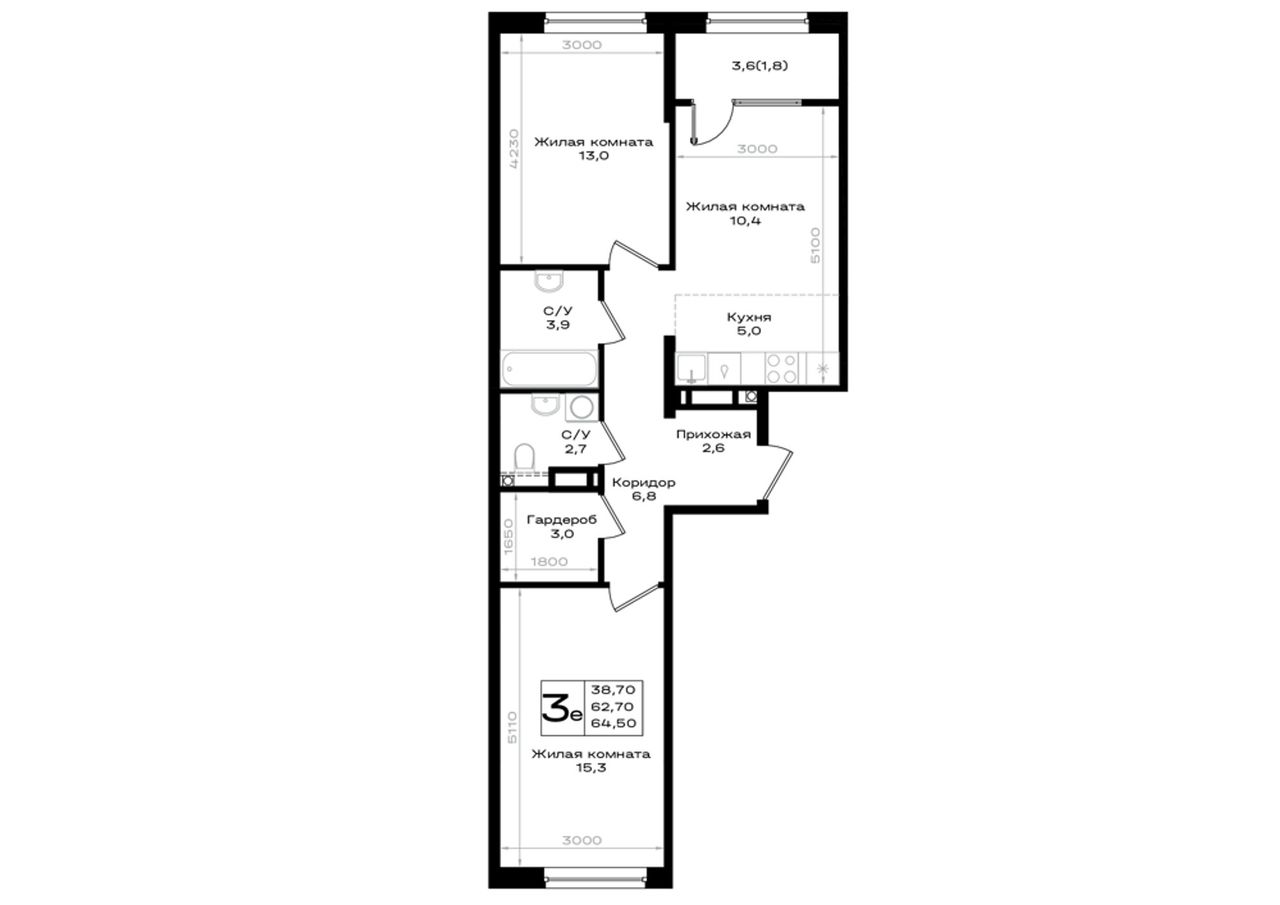 Общая площадь64,5 м²