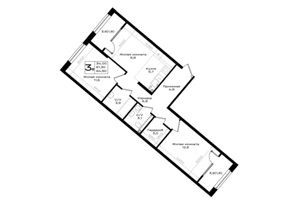 3-комнатная — 64,9 м² 2/18 эт. в Придонье