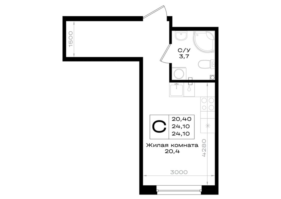 Общая площадь24,1 м²
