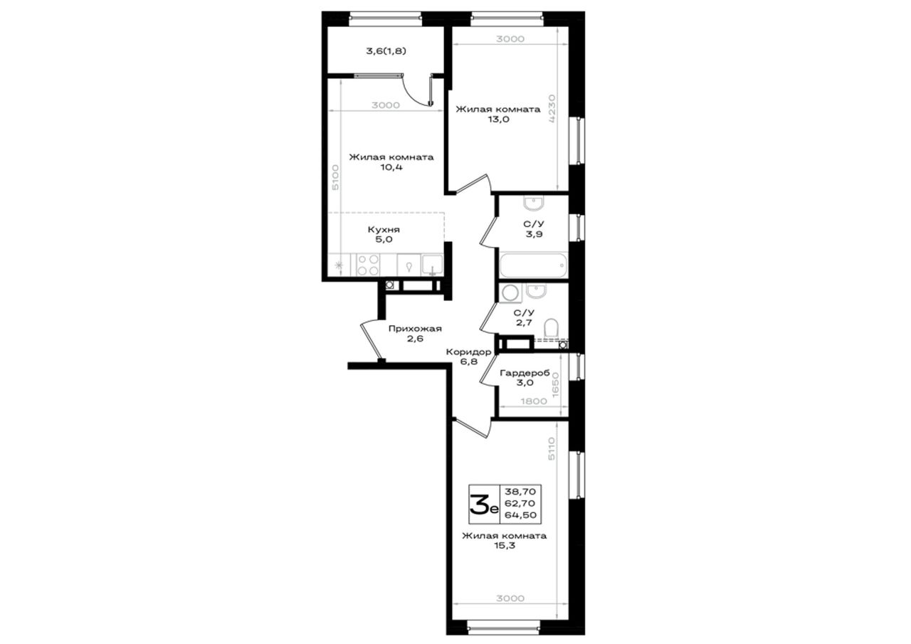 Общая площадь64,5 м²
