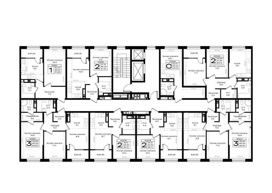 | 3-комн. | 62 - 86 м² | 11,6 - 23,2 млн ₽ |