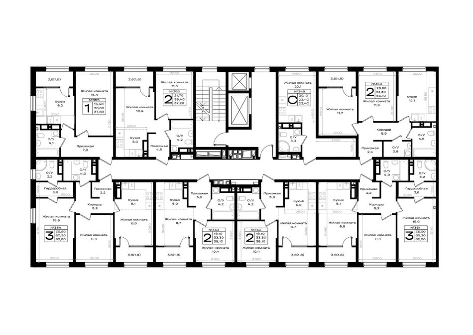 | 3-комн. | 62 - 86 м² | 11,6 - 23,2 млн ₽ |