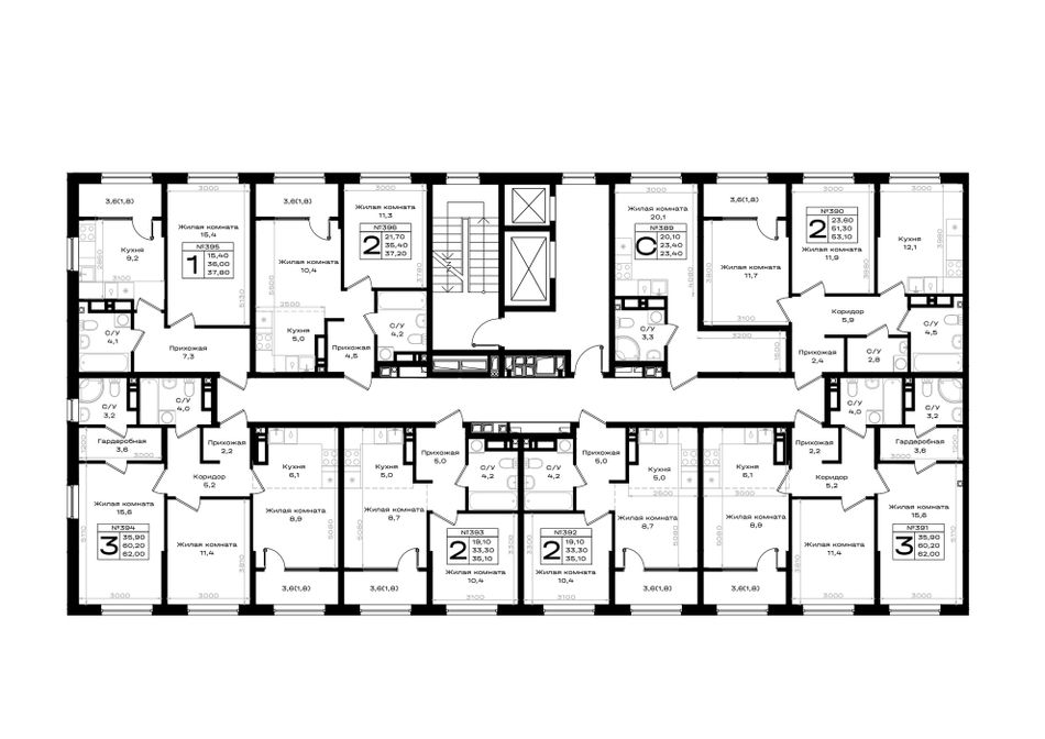 | 3-комн. | 62 - 86 м² | 11,6 - 23,2 млн ₽ |