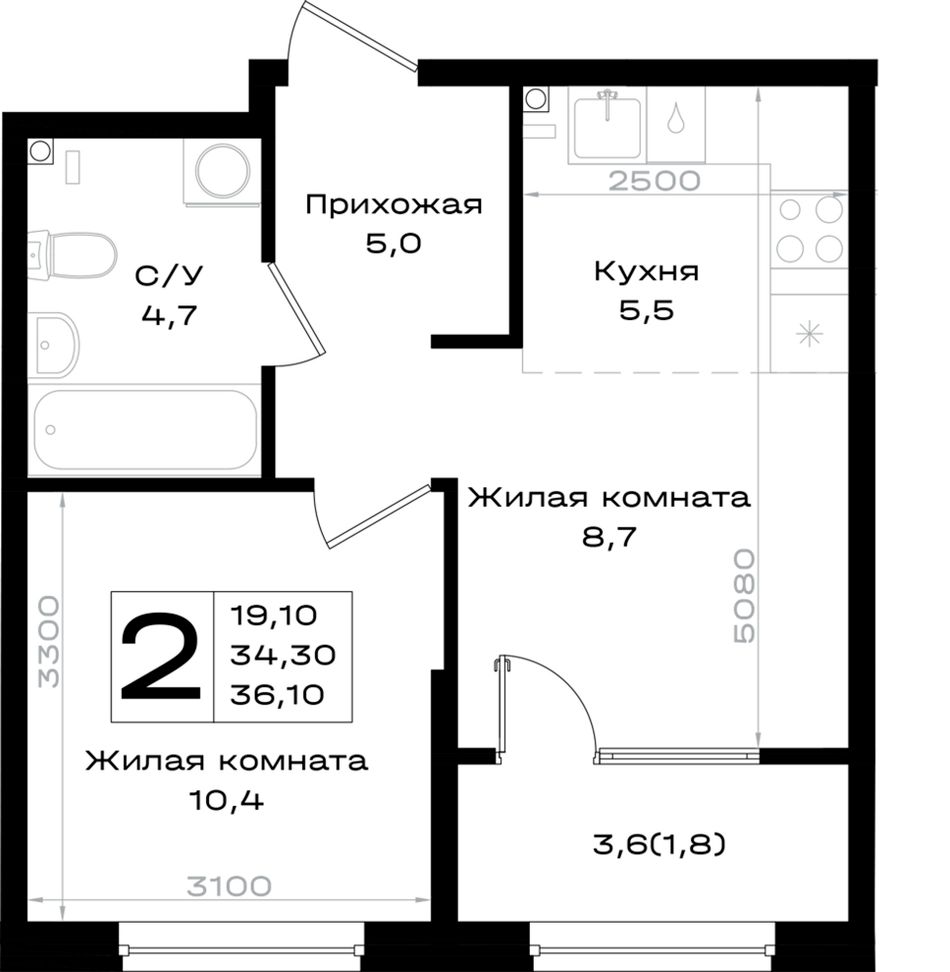 2-комнатная — 36,1 м² 2/18 эт. в Придонье