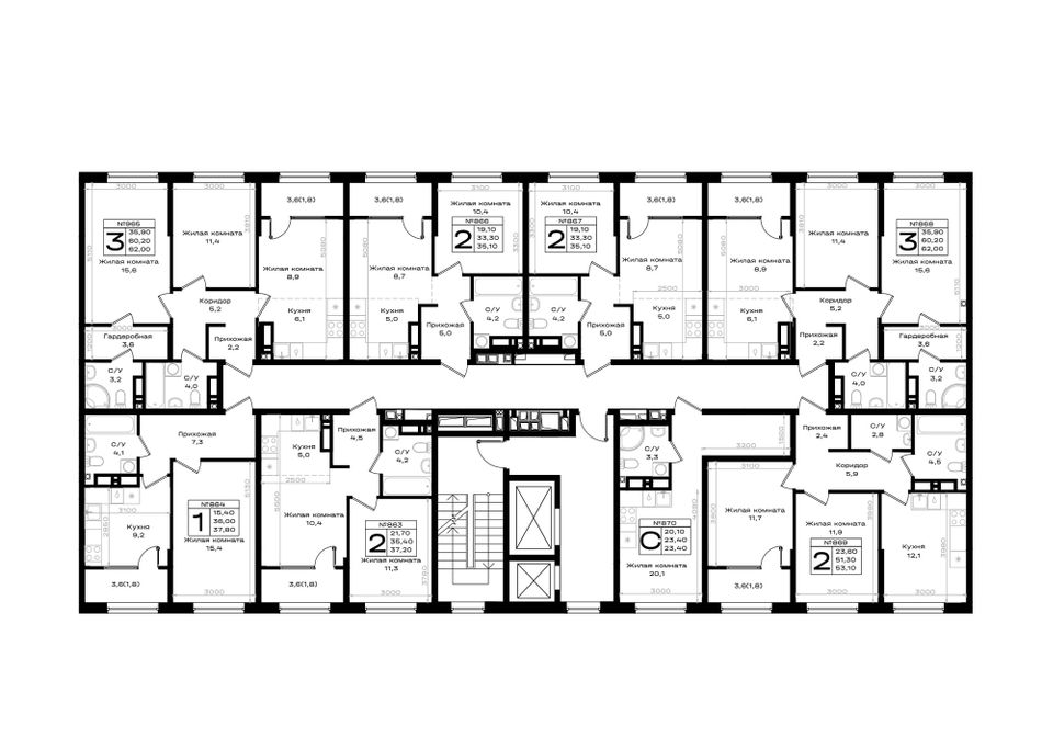 | 3-комн. | 62 - 86 м² | 11,6 - 23,2 млн ₽ |