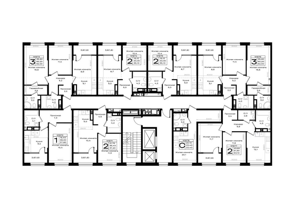 | Студия | 19 - 23 м² | 3,3 - 4 млн ₽ |