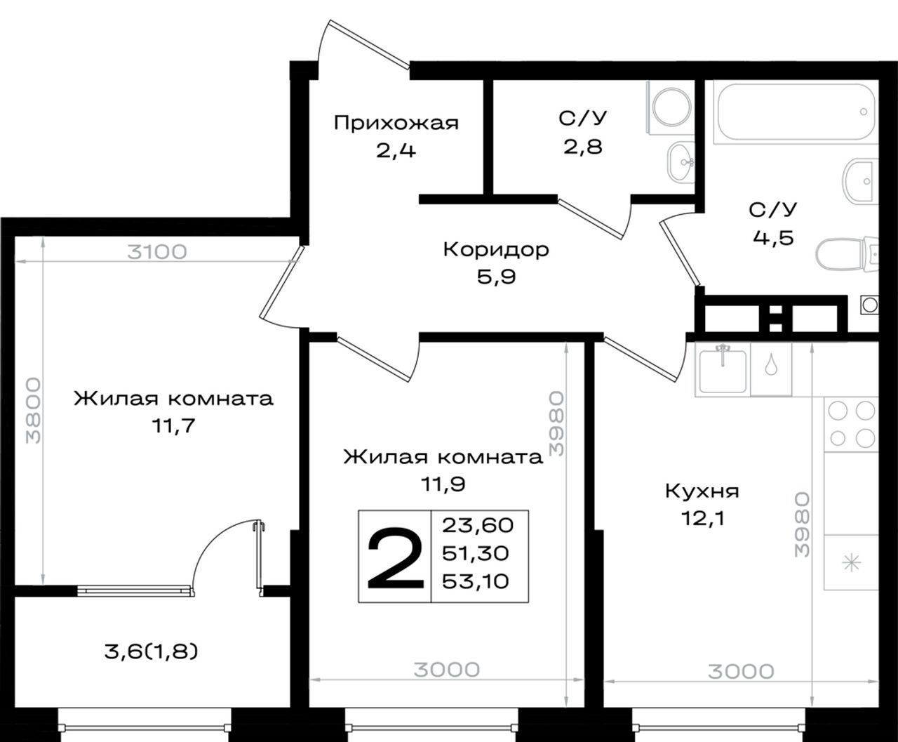 Общая площадь53,1 м²