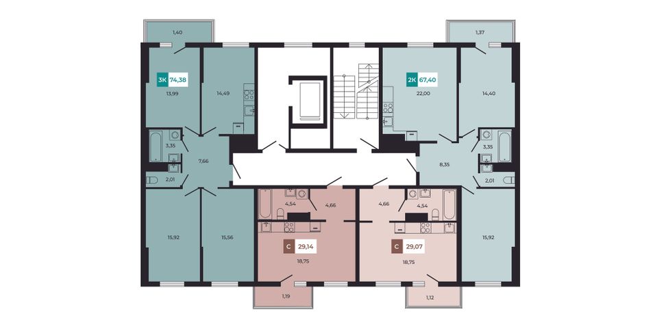 | 2-комн. | 55 - 74 м² | 7,5 - 9,9 млн ₽ |