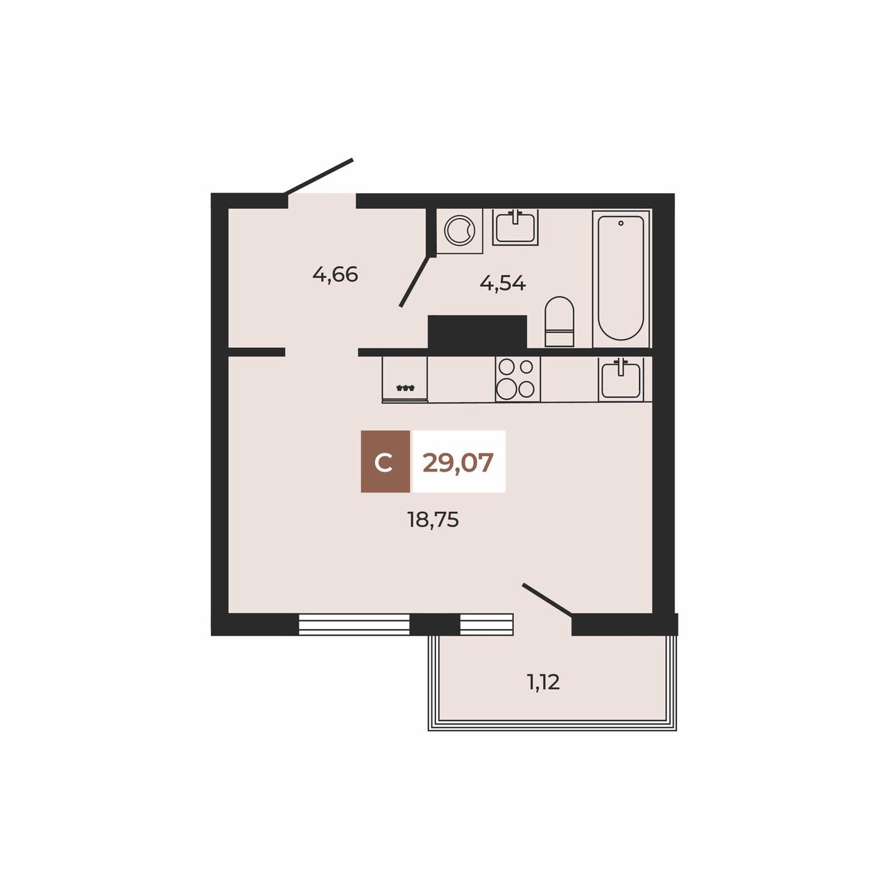 Общая площадь29,07 м²