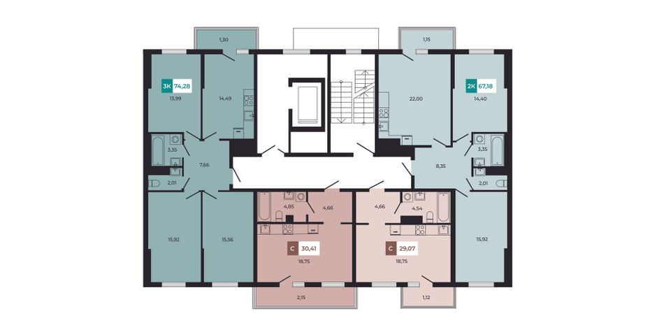 | 2-комн. | 55 - 74 м² | 7,5 - 9,9 млн ₽ |