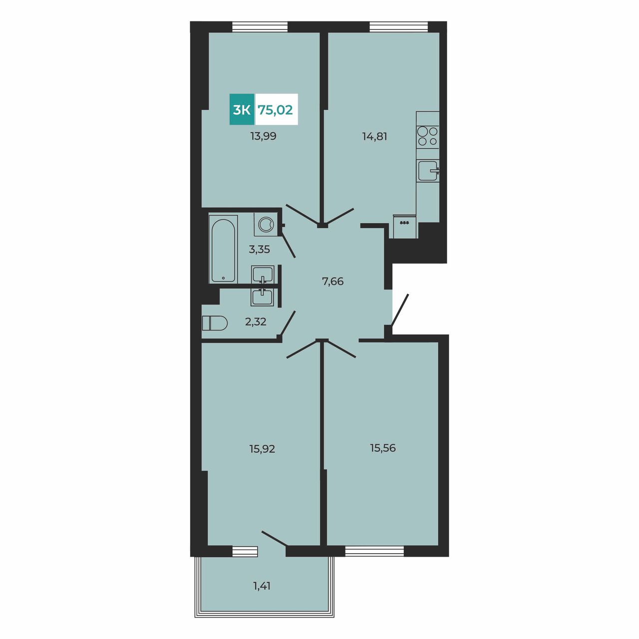 3-комнатная — 75,02 м² 1/8 эт. в Соседи
