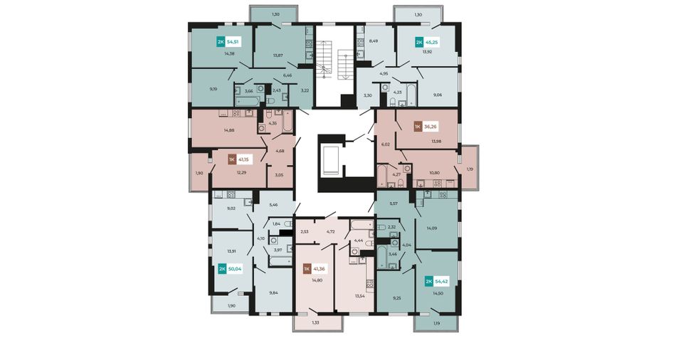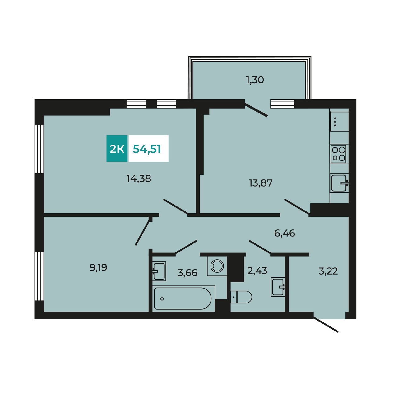 2-комнатная — 54,51 м² 4/8 эт. в Соседи