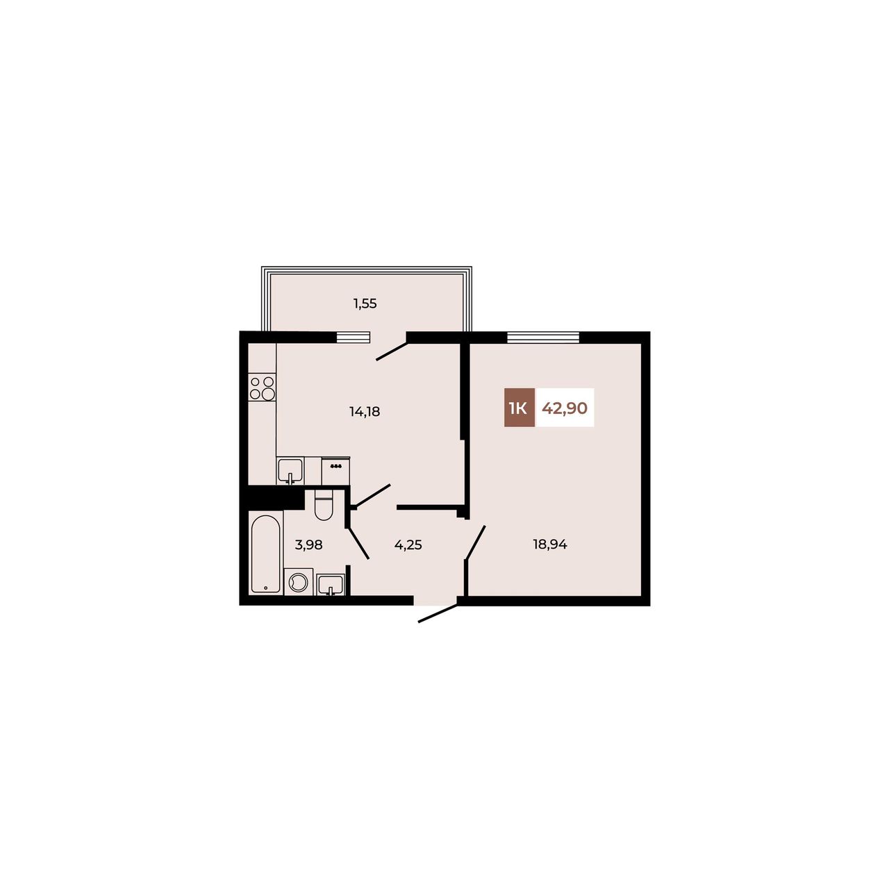 Общая площадь42,9 м²