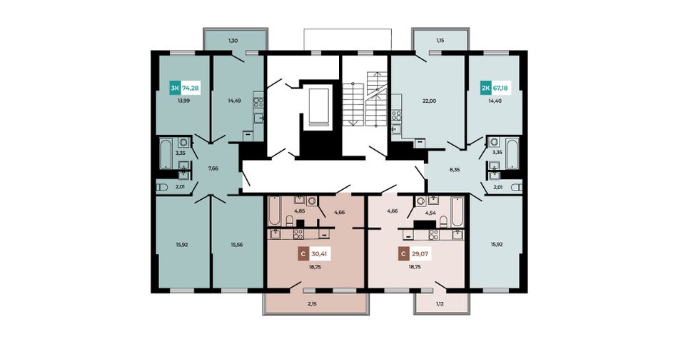 | 2-комн. | 55 - 74 м² | 7,5 - 9,9 млн ₽ |