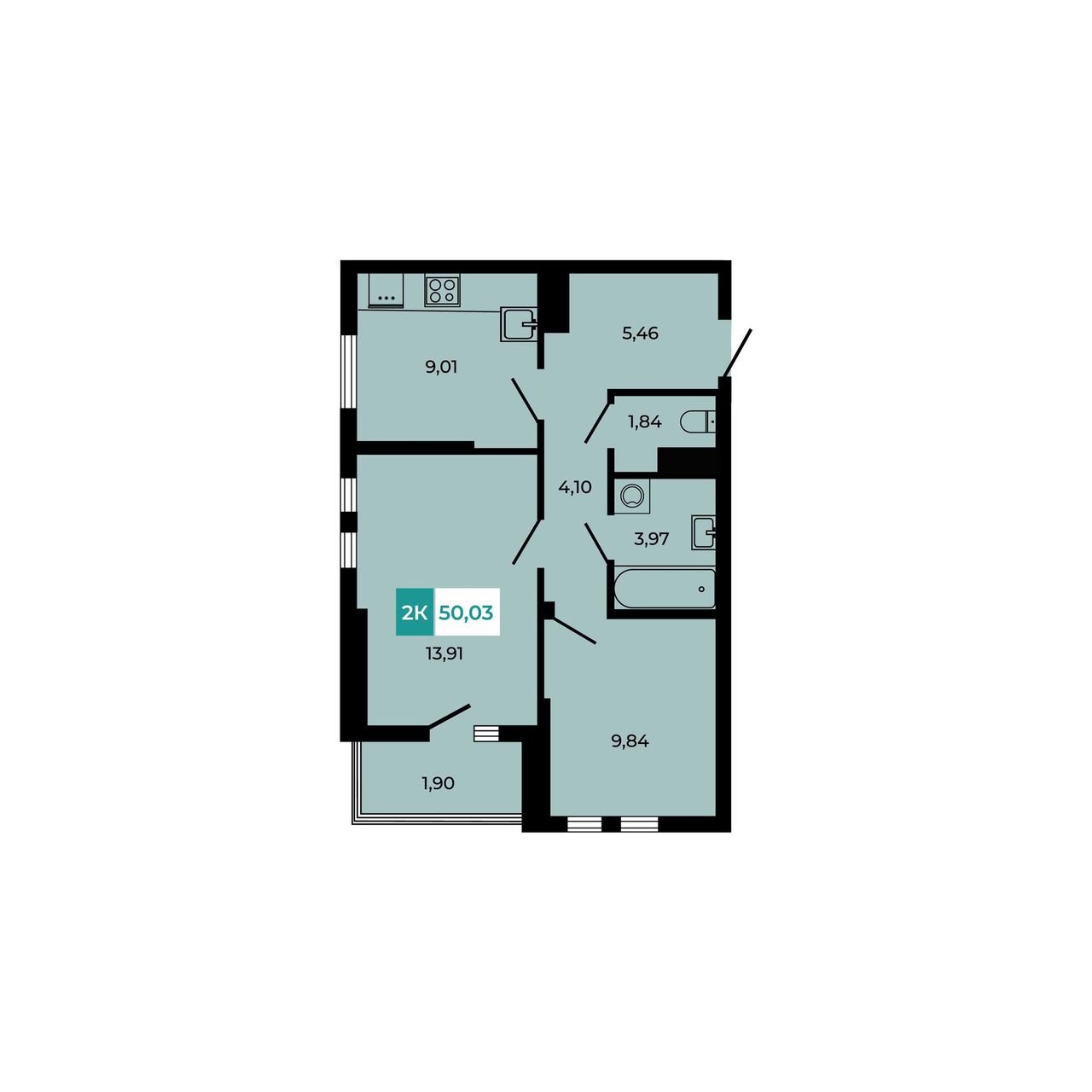 2-комнатная — 50,03 м² 5/8 эт. в Соседи