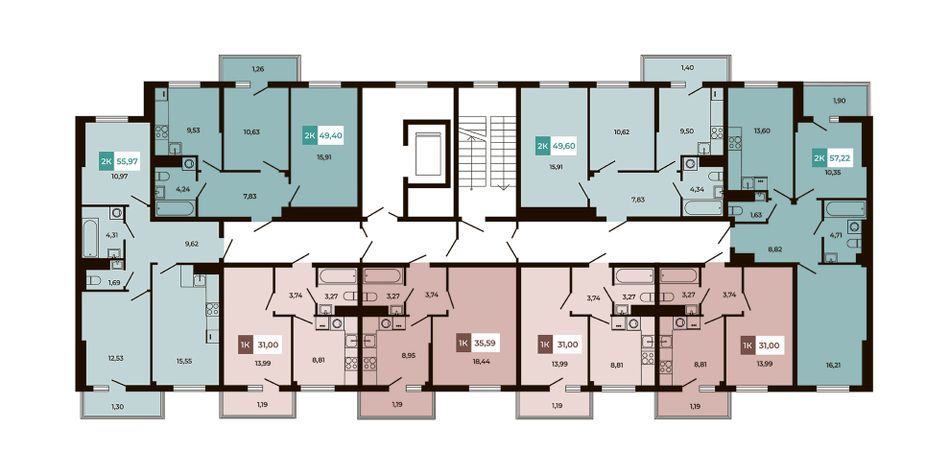| 2-комн. | 55 - 74 м² | 7,5 - 9,9 млн ₽ |