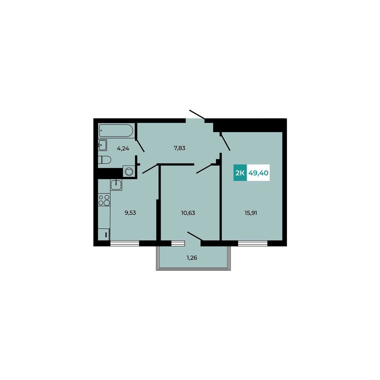 2-комнатная — 49,4 м² 6/8 эт. в Соседи