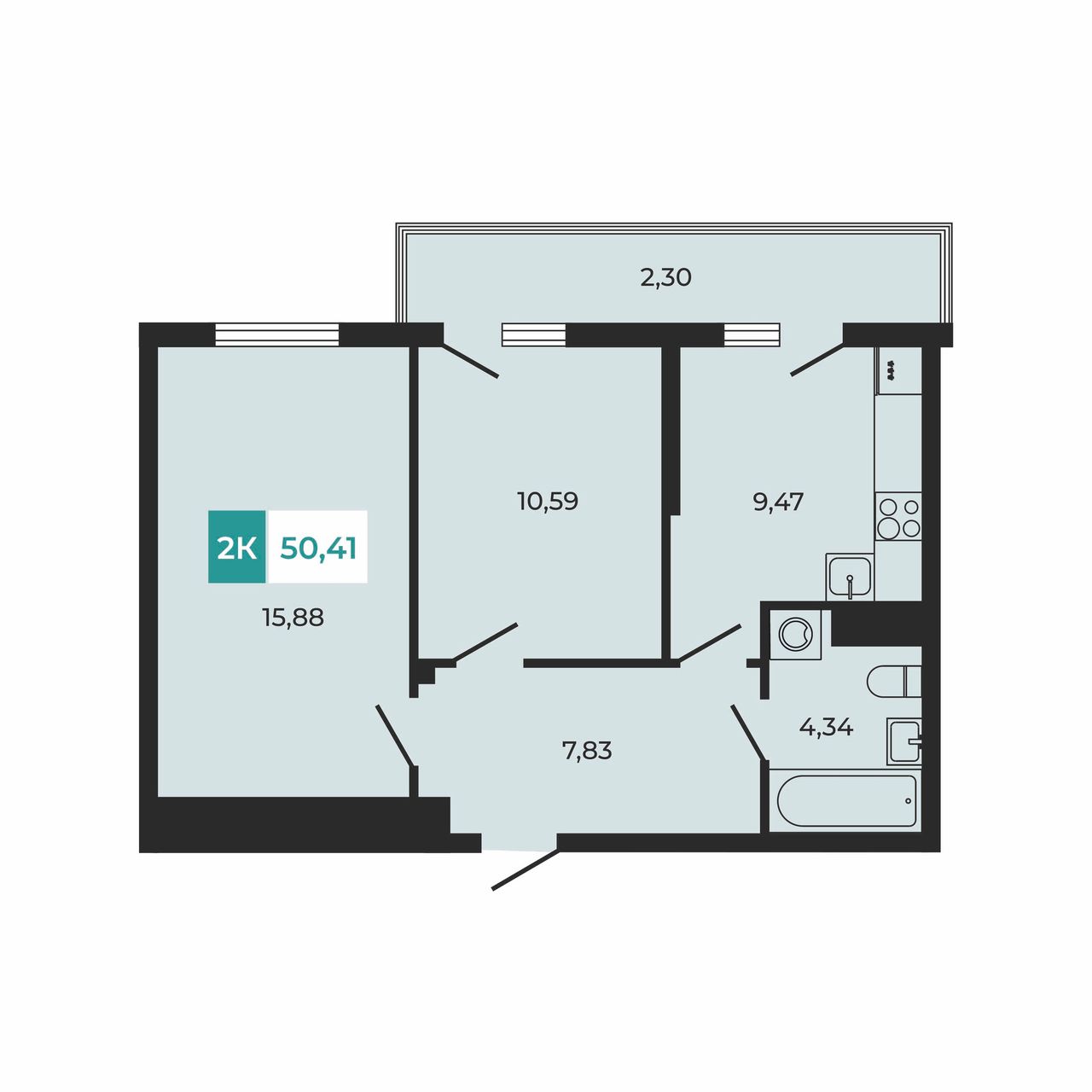 2-комнатная — 50,41 м² 3/8 эт. в Соседи