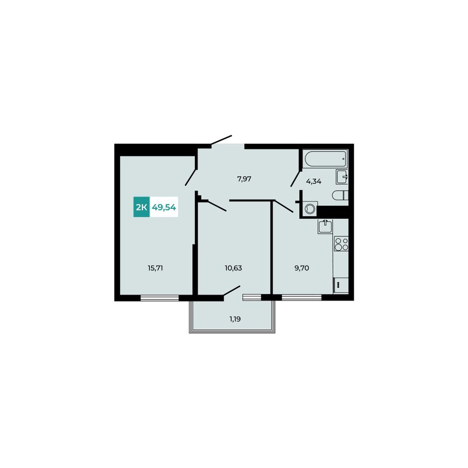 Общая площадь49,54 м²