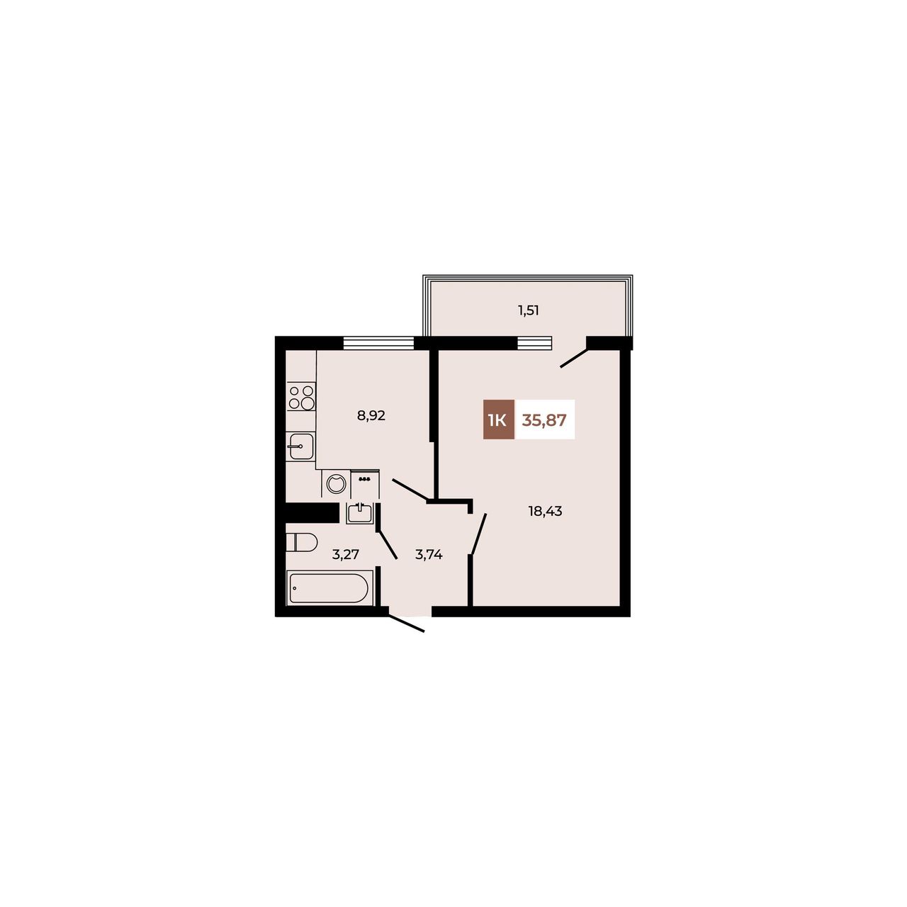 1-комнатная — 35,87 м² 5/8 эт. в Соседи