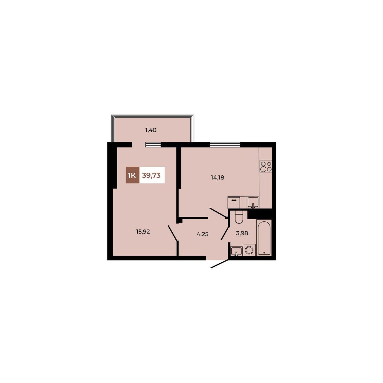 1-комнатная — 39,73 м² 6/8 эт. в Соседи