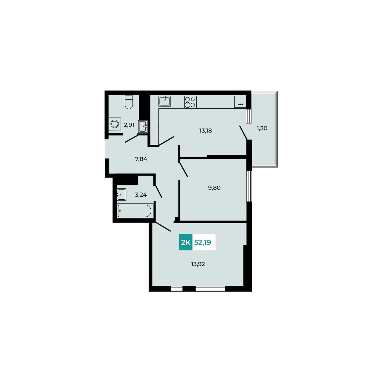 Общая площадь52,19 м²