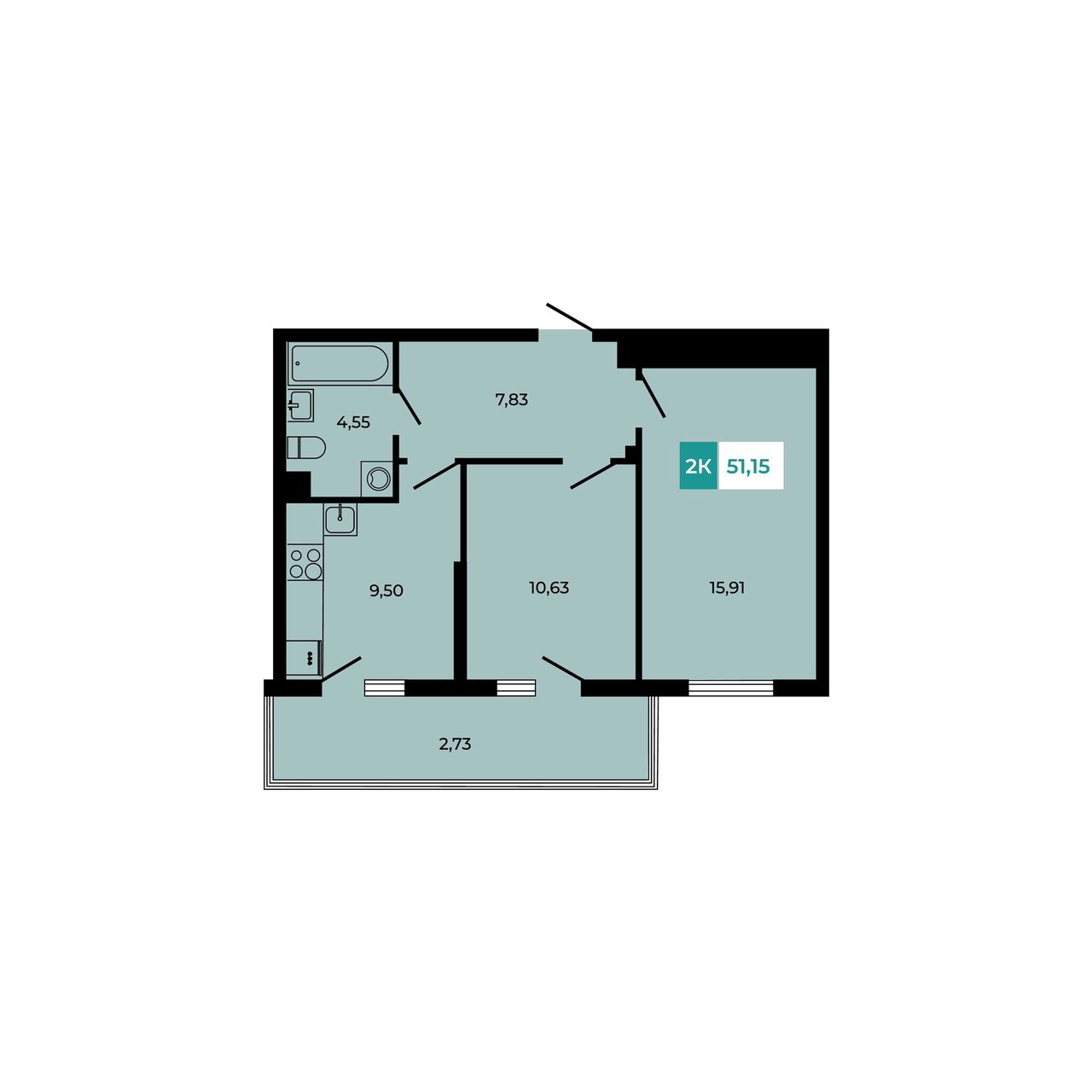 2-комнатная — 51,15 м² 1/8 эт. в Соседи