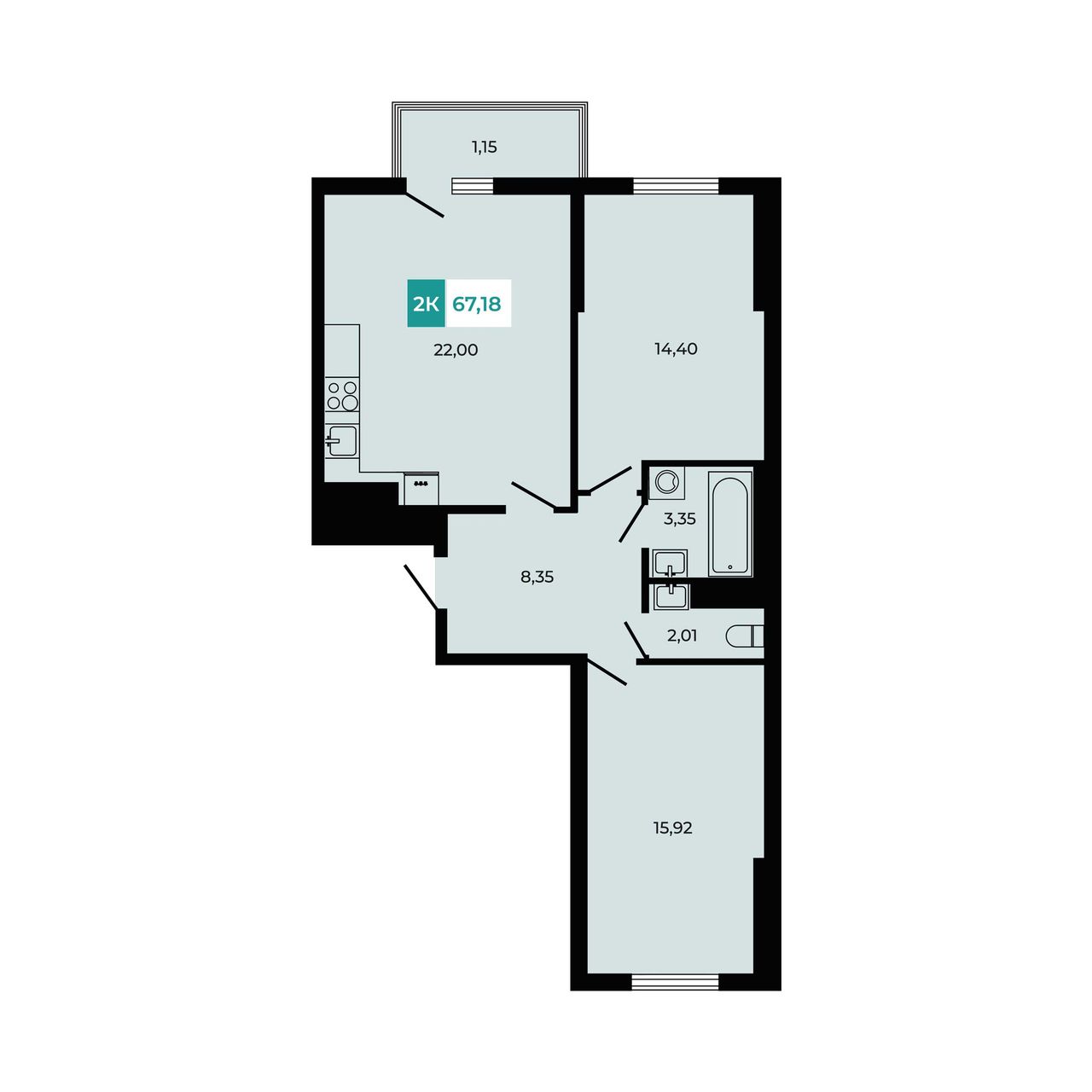 Общая площадь67,18 м²