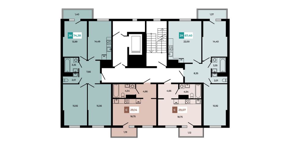 | 2-комн. | 55 - 74 м² | 7,5 - 9,9 млн ₽ |