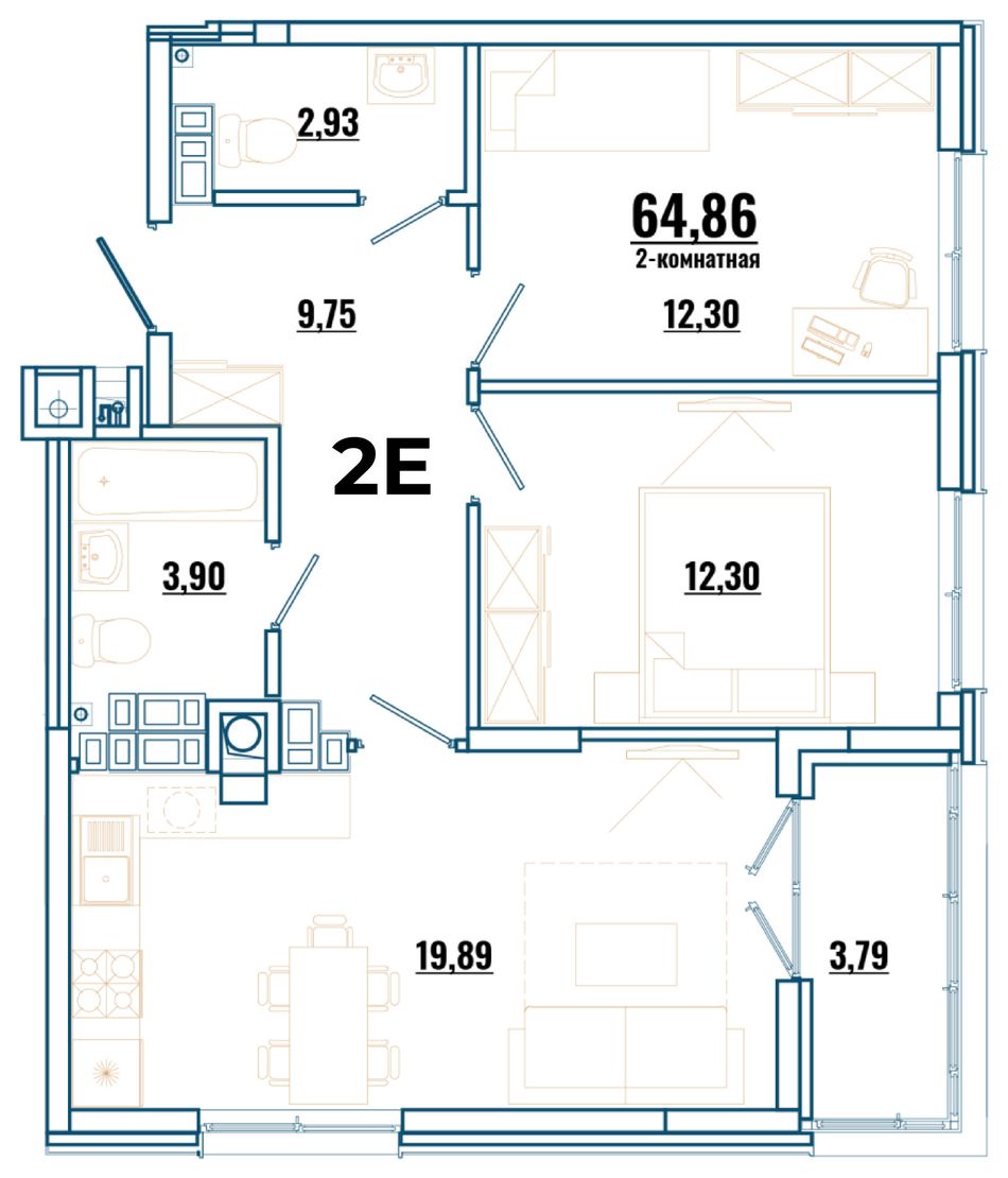 2-комнатная — 62,97 м² 2/4 эт. в Локация 9-11