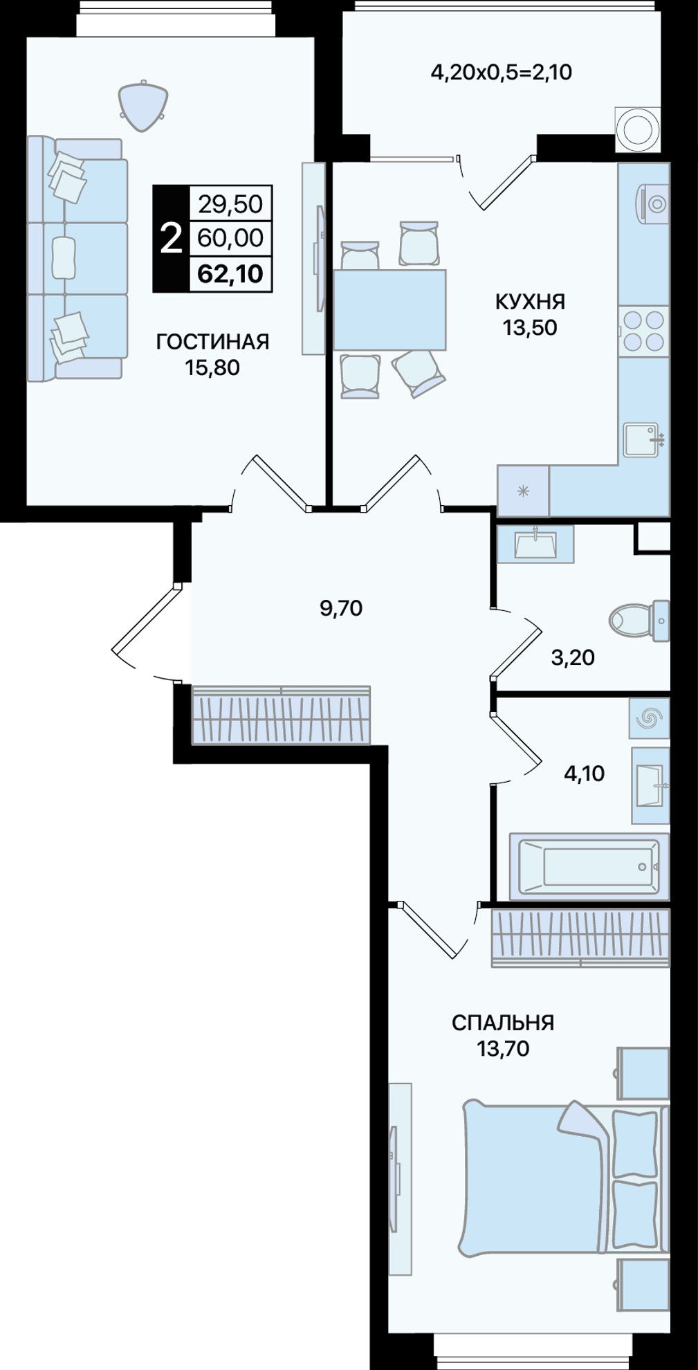 Общая площадь62,1 м²