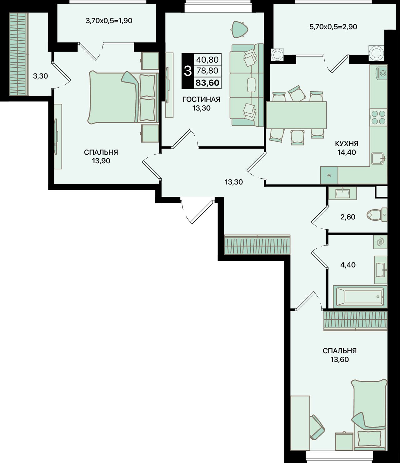 Общая площадь83,6 м²