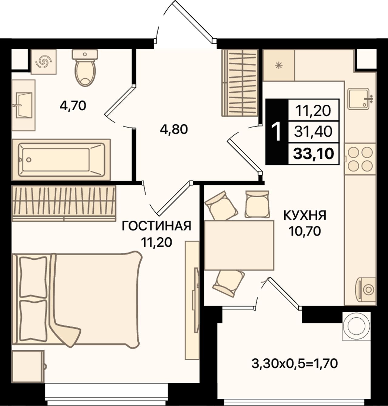 Общая площадь33,1 м²