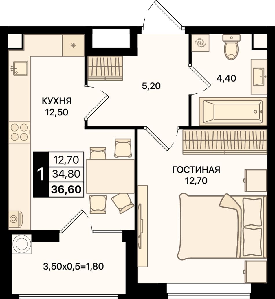 Общая площадь36,6 м²
