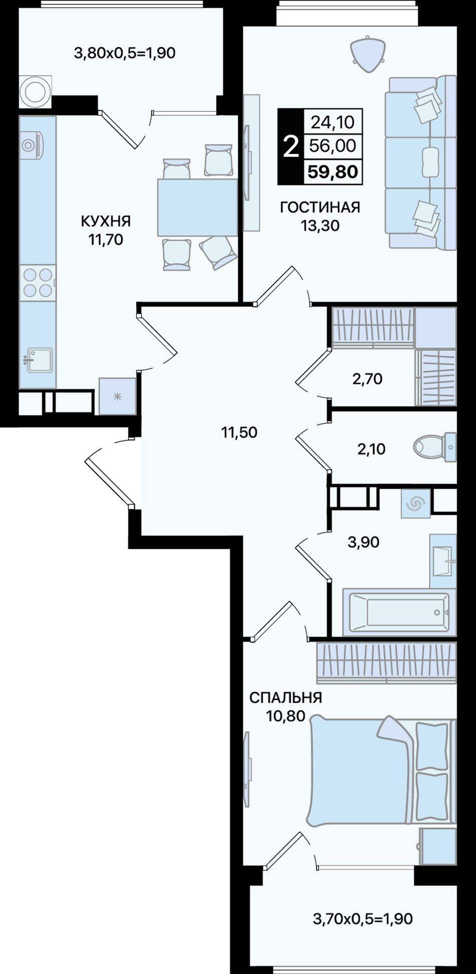 Общая площадь59,8 м²